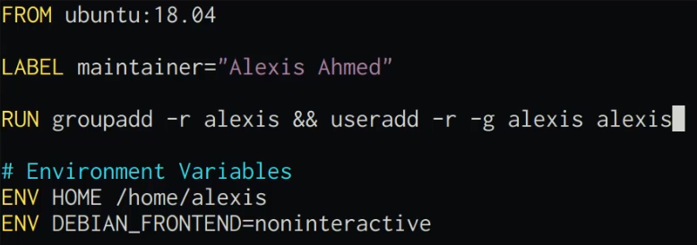 As an added security measure, we can disable the “root” user by modifying the Dockerfile: