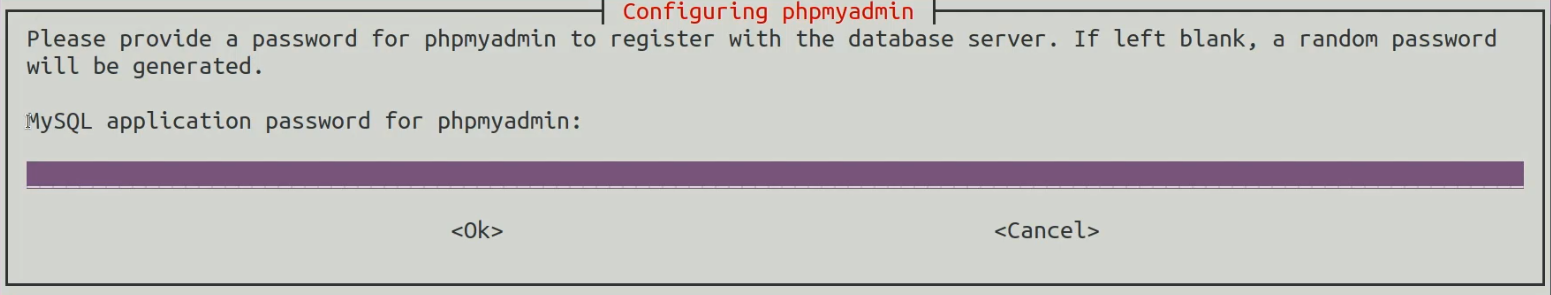 You will also be prompted to specify an application password for MySQL, ensuring that you use a strong password.