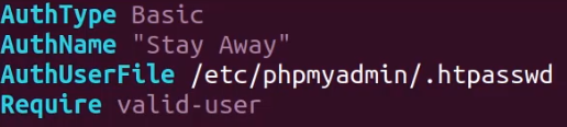 As an added layer of security, we can also leverage the Apache2 authentication functionality to integrate a username and password authentication form that will be configured to protect the phpMyAdmin directory/URL. This can be done by following the procedures outlined below: