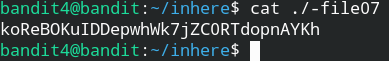 The password for the next level is stored in the only human-readable file in the inhere directory. Tip: if your terminal is messed up, try the “reset” command.